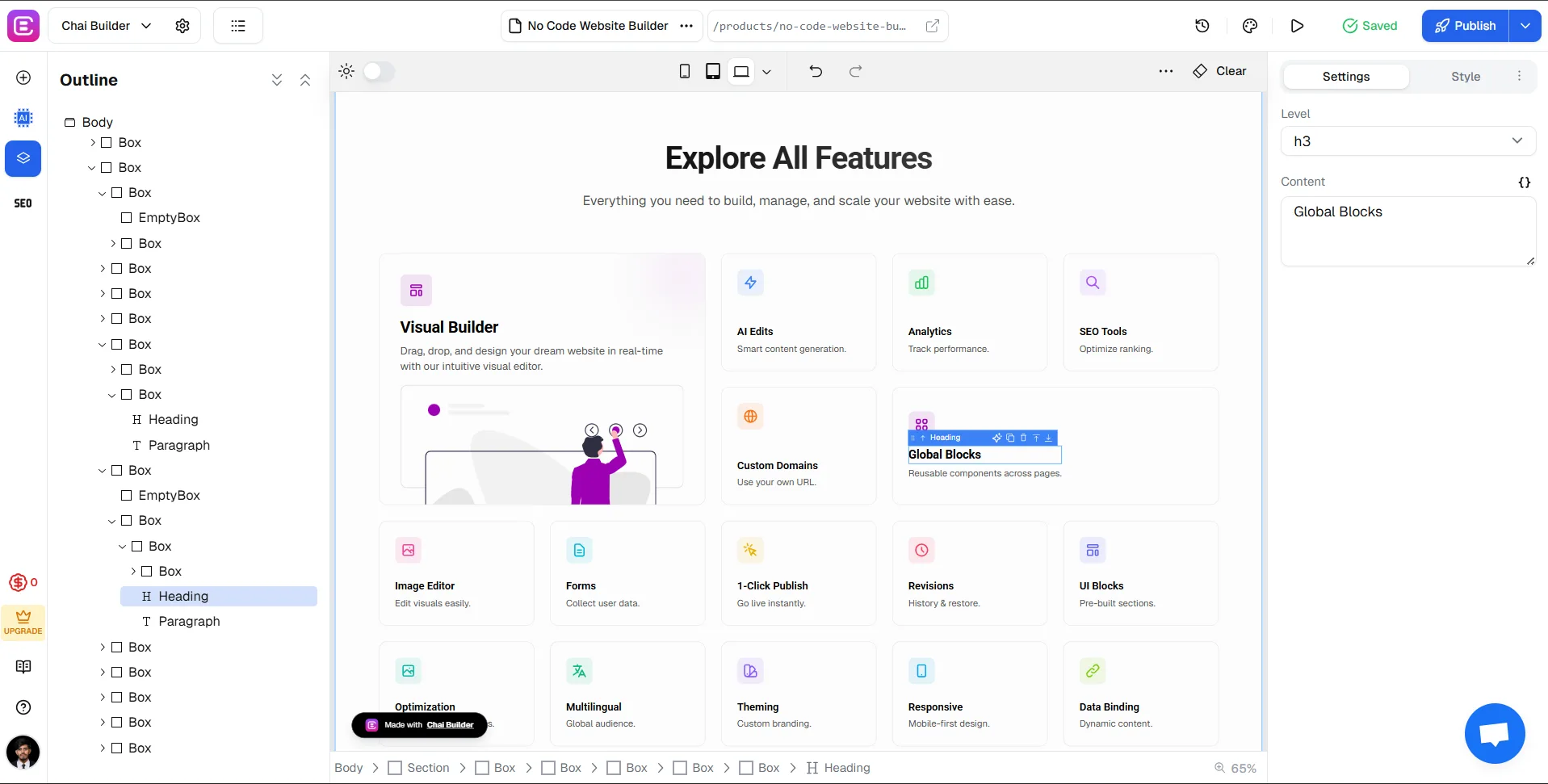 Use AI in Chai Builder for content generation, adding new section, style editing, and SEO field optimization to enhance designs and visibility